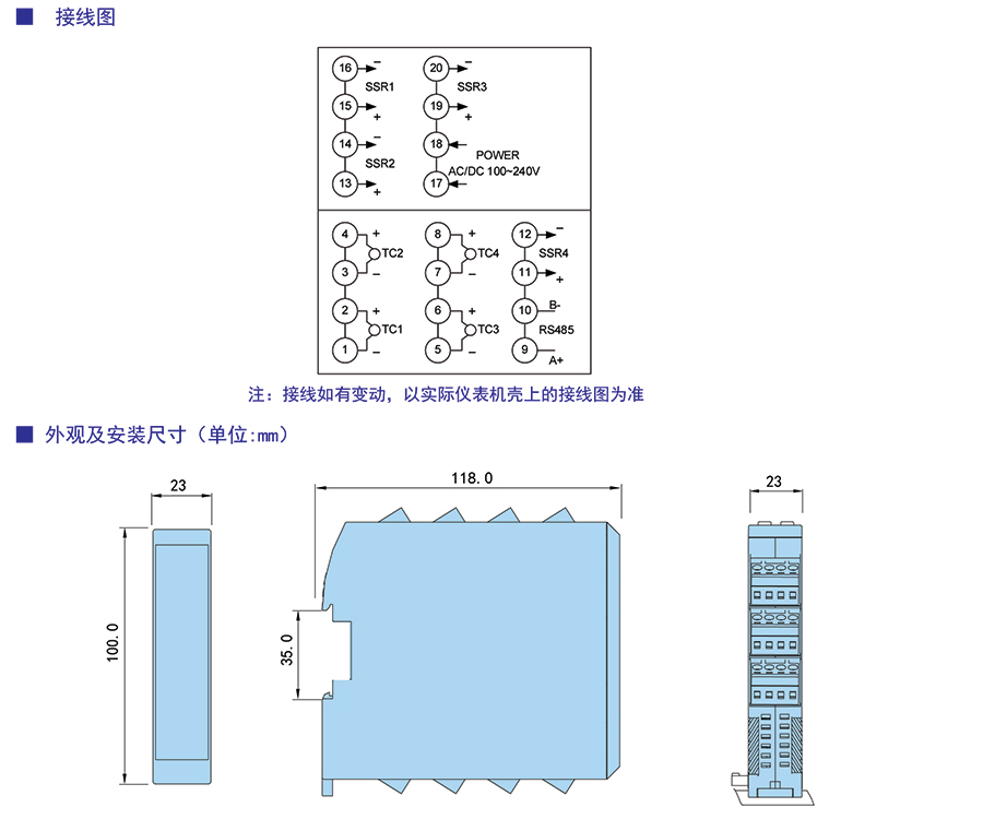 適用于多溫區塑料機械、包裝機械、隧道爐設備等,也可以為現場溫度信號采集儀表使用。