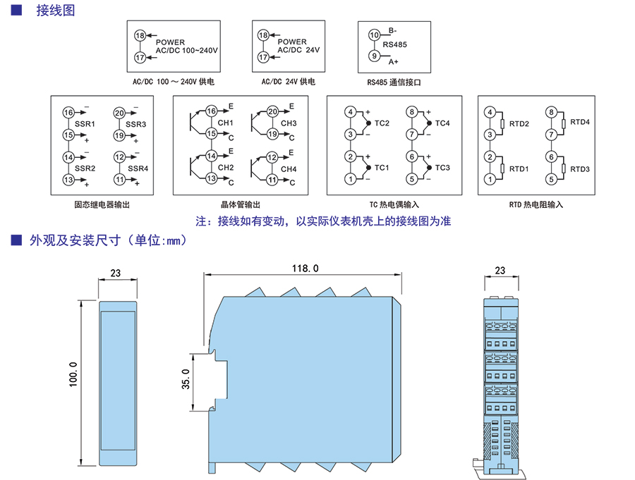 適用于多溫區塑料機械、包裝機械、隧道爐設備等,也可以為現場溫度信號采集儀表使用。