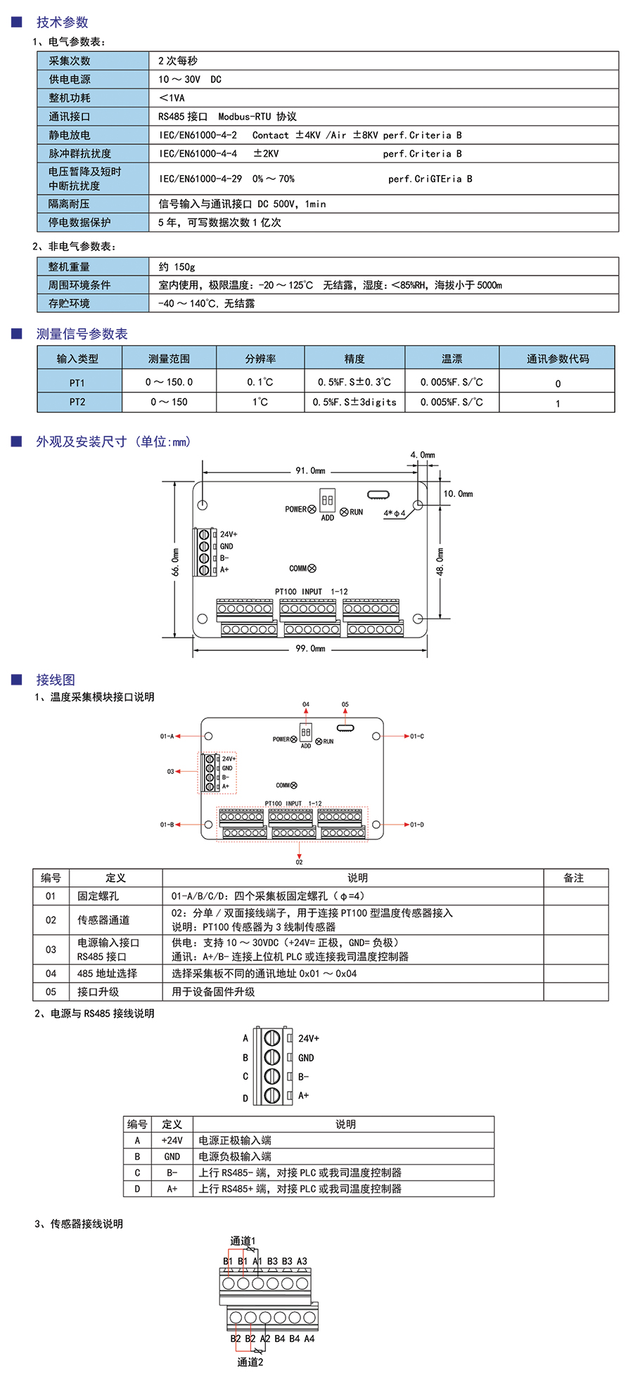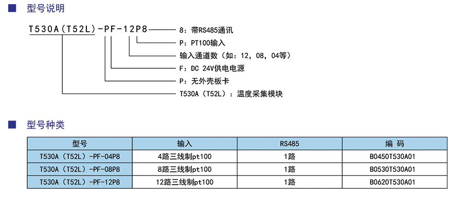 T530A(B)(T52L)系列4/8/12路溫度采集板