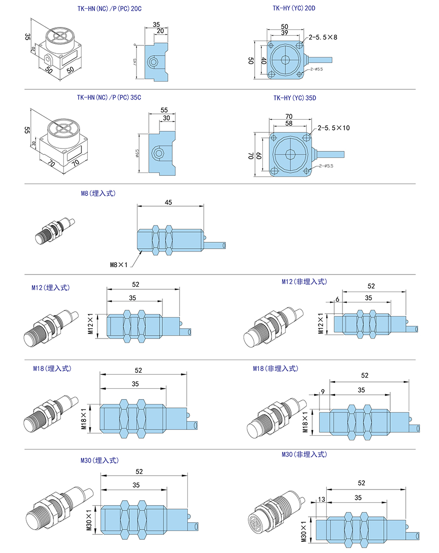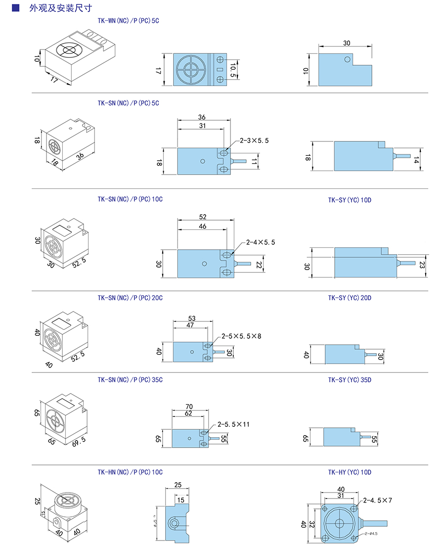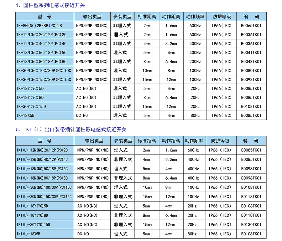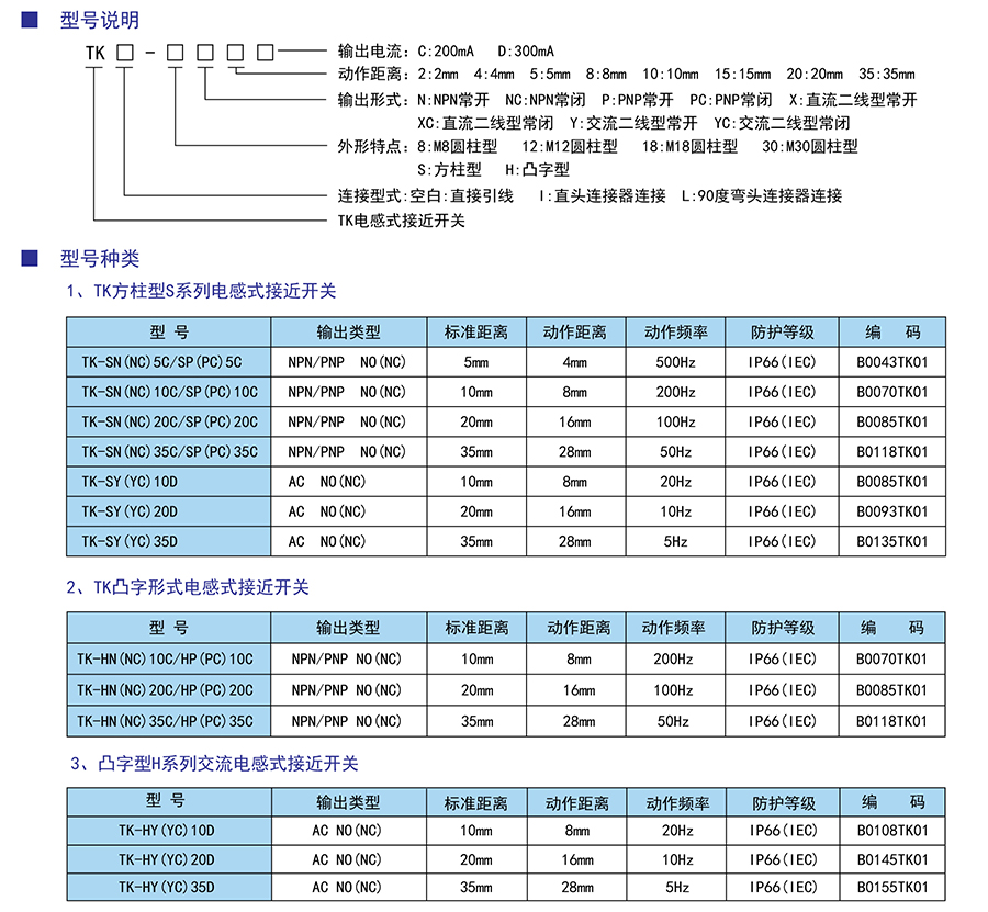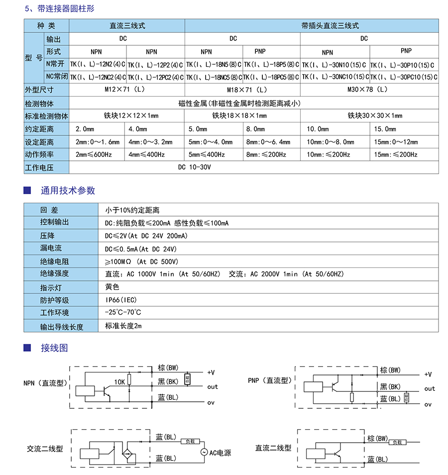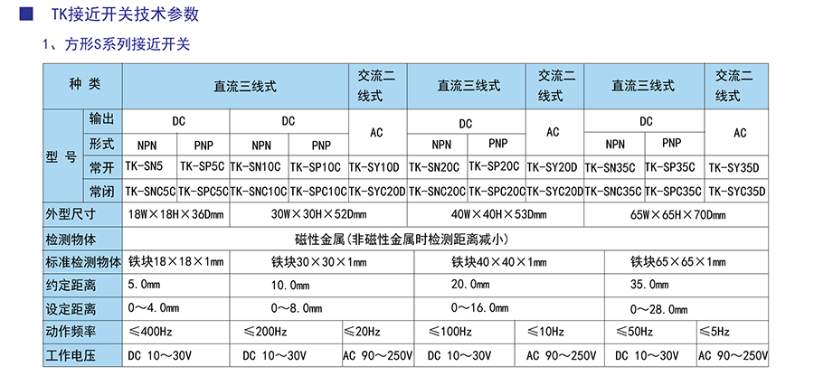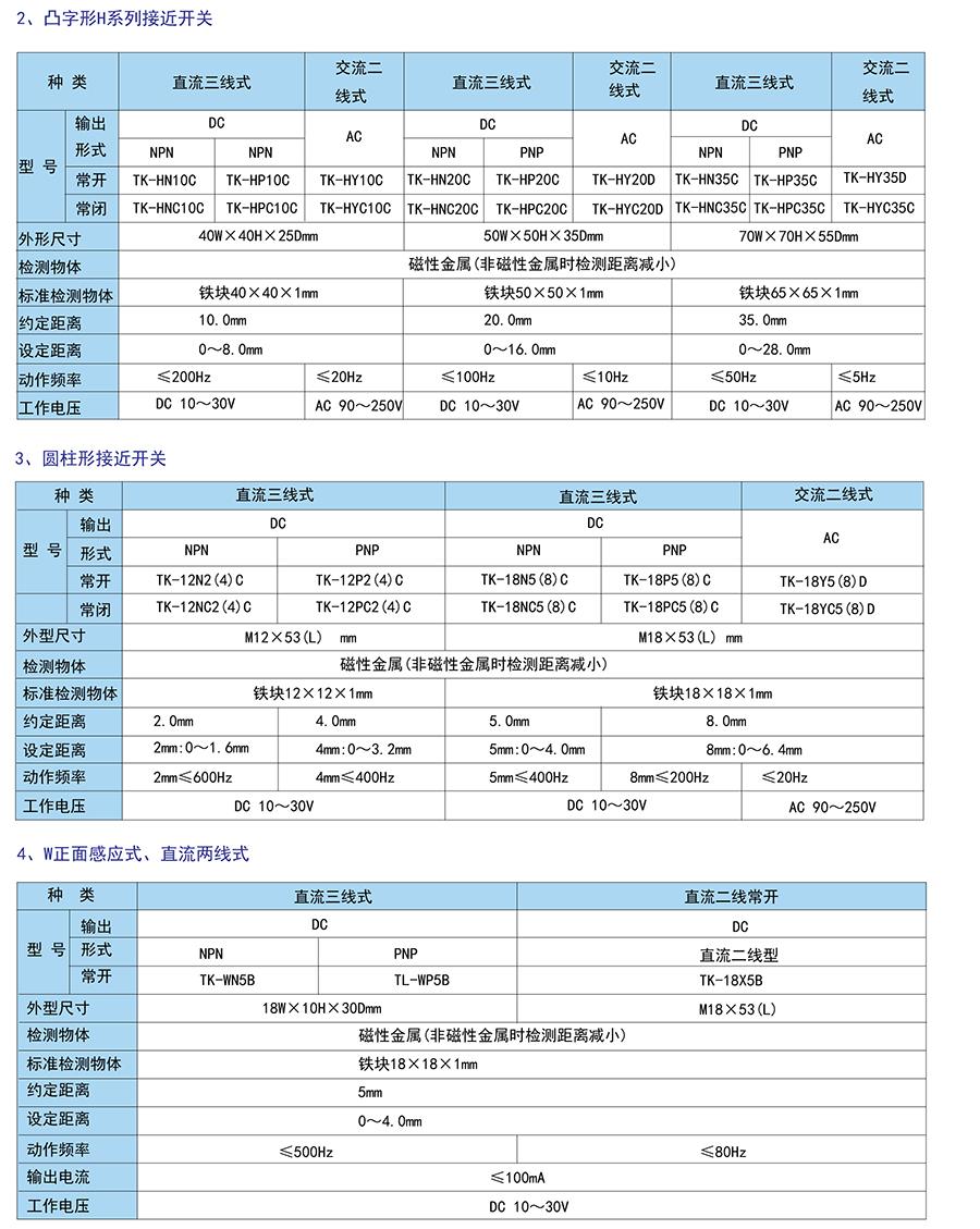 具有三線/二線制、交/直流型、常開/常閉式型號可選