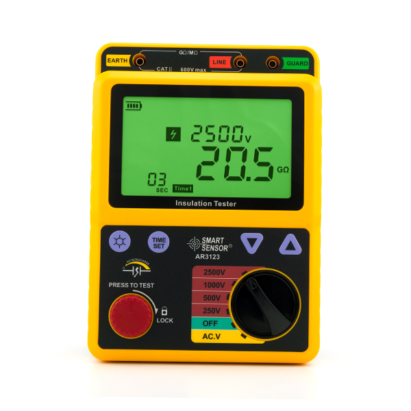 250V:0.0~499.9MΩ 500V:0.0~999MΩ 1000V:0.0~1.99GΩ 2500V:0.0~99.9GΩ |