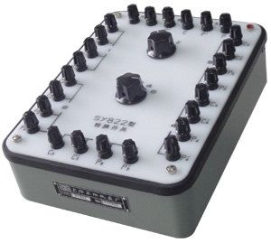 SY822型 轉(zhuǎn)換開(kāi)關(guān)是檢定熱電阻專用開(kāi)關(guān),是與直流電位差計(jì)或測(cè)量電橋配套使用,一次可連接五支熱電阻,每支都以四端連接法進(jìn)行測(cè)量。開(kāi)關(guān)還可以在電測(cè)量中作電流換向用。