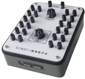 轉(zhuǎn)換開關(guān) SY821型轉(zhuǎn)換開關(guān)是檢定熱電偶的專用開關(guān),面板上有七對接線柱和兩個轉(zhuǎn)換開關(guān),借助于一支標(biāo)準(zhǔn)熱電偶和一臺直流電位差計(jì),一次可檢定5支熱電偶。該開關(guān)也可作為電源換向開關(guān)使用。
